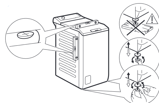 Próba regulacji tylnych nóżek w takich pralkach może zakończyć się uszkodzeniem mechanicznym.