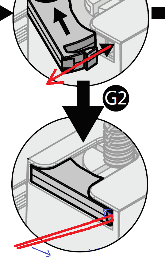 2. Lekko odchyl śrubokrętem całą blokadę w kierunku do siebie.