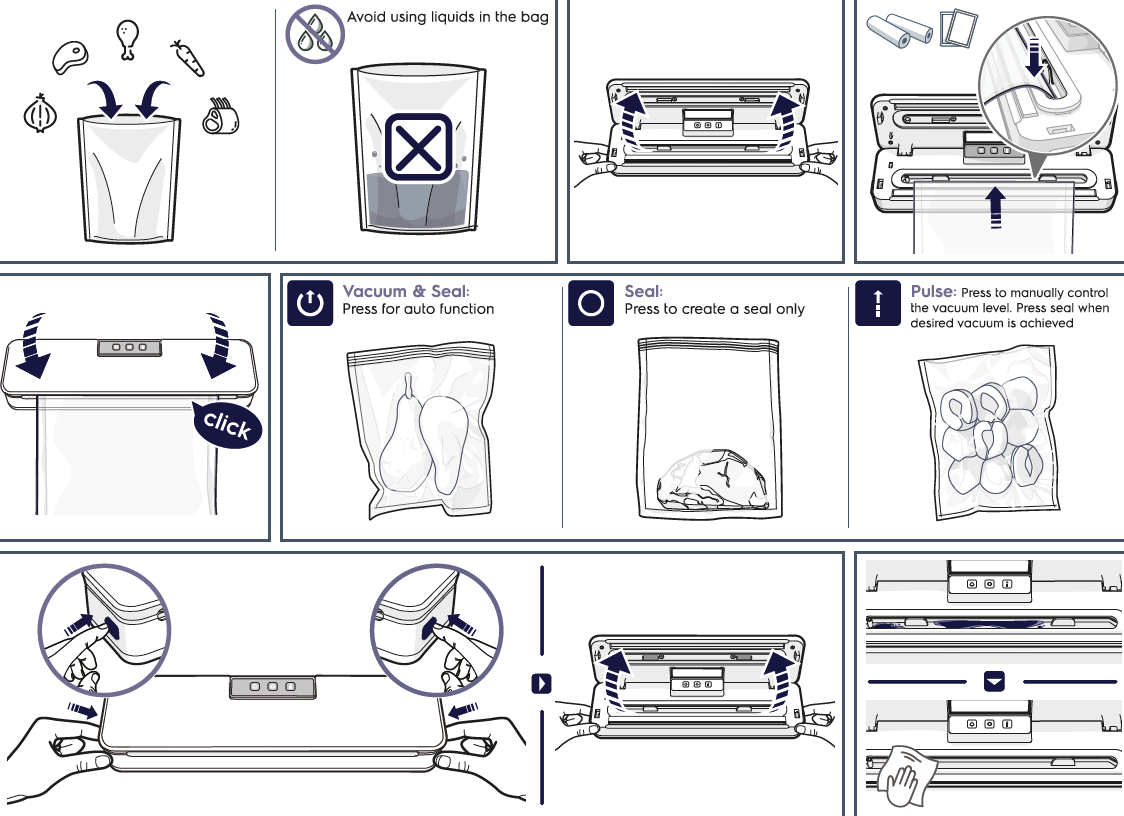 3. Zamknięcie pokrywy. - Instrukcja graficzna pakowania próżniowego poniżej: