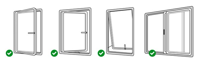 Poniższy przegląd pokazuje typy okien, dla których zestaw okienny jest i nie jest odpowiedni.