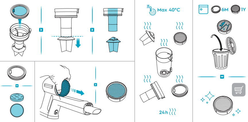 - Jak opróżnić/wyczyścić pojemnik na kurz i wyczyścić filtry w odkurzaczu bezprzewodowym