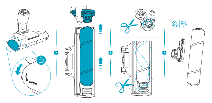 Ponadto zalecamy regularne sprawdzanie rolki szczotki odkurzacza i usuwanie wszelkich splątanych włosów lub zanieczyszczeń, aby zapewnić optymalną wydajność odkurzania.