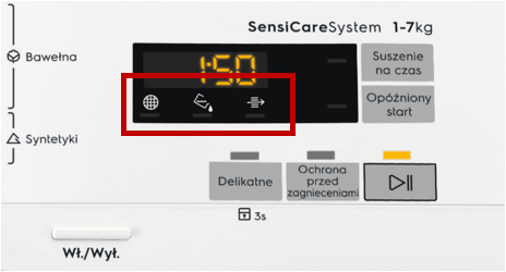 - Suszarka kondensacyjna nie suszy prawidłowo i/lub nie nagrzewa się i/lub wyświetla niewłaściwy czas na wyświetlaczu