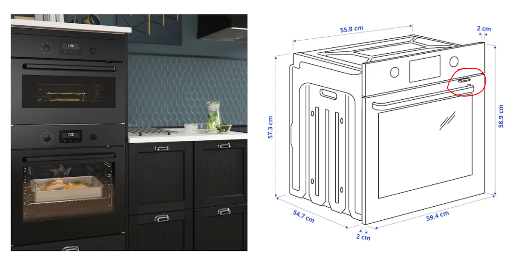 Każdy piekarnik zakupiony w IKEA, wyprodukowany przez firmę Electrolux, jest wyposażony w mechaniczną blokadę drzwi, która zabezpiecza przed przypadkowym otwarciem. Aby odblokować drzwi piekarnika, wystarczy podnieść blokadę ku górze.