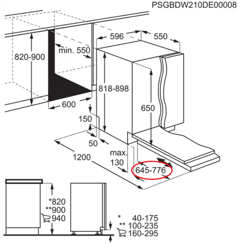 Wszystkie zmywarki do zabudowy Electrolux wyposażone są w zawiasy ślizgowe. Jest to jedyna zalecana metoda zabudowy zmywarki.
