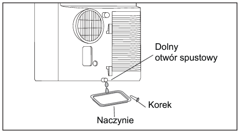 - Zlokalizuj dolny korek spustowy (z tyłu lub z boku urządzenia) i wyjmij go.
