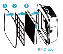 - Sprawdź czy czujnik znajdujący się na filtrze nie jest uszkodzony. Czujnik wygląda jak naklejka, znajduje się po prawej stronie, na rancie filtra. (Oznaczony na rysunku jako RFID tag - informacja również w instrukcji obsługi)
