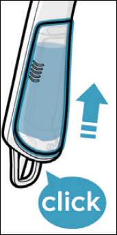 Włóż całkowicie zbiornik na wodę parownicy do ubrań, aż usłyszysz kliknięcie zatrzasku.