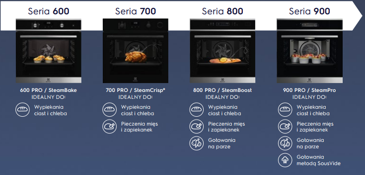 Piekarniki parowe Electrolux pozwolą Ci rozkoszować się doskonałym smakiem i konsystencją ulubionych dań. Funkcja dodania pary do potraw zapewni: