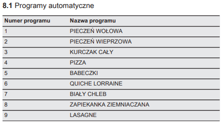 - Jakie są programy automatyczne w piekarniku EOE7P31Z, EOE7P31X
