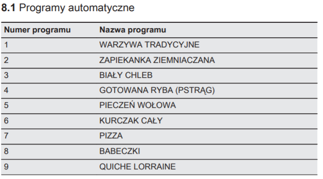 - Ile jest programów automatycznych w piekarniku KOBCS31X