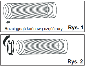 Rozciągnij wąż (dołączony do klimatyzatora) z obu stron (rys. 1) i przykręć go do elementu przejściowego A (rys. 2).