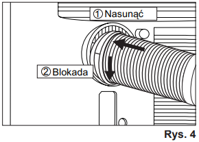 Rozciągnij wąż z drugiej strony i przykręć go do elementu przejściowego B (rys. 3).