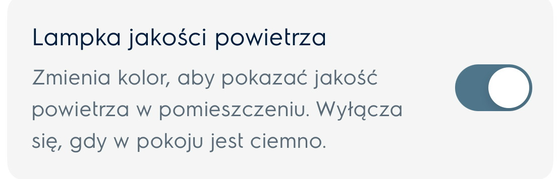 - W zaciemnieniu nie działa wskaźnik jakości powietrza.