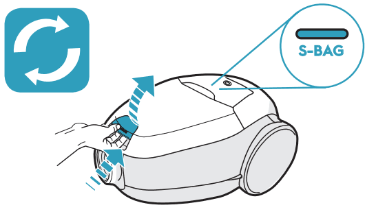 - Cały czas świeci się dioda S-Bag w odkurzaczu na biało.